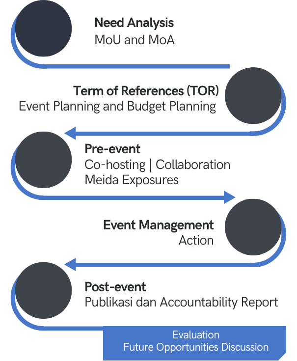 Menyediakan layanan event hosting yang mendukung penyelenggaraan acara secara end-to-end, mulai dari tahap perencanaan dan persiapan, pelaksanaan acara, hingga evaluasi pasca acara.